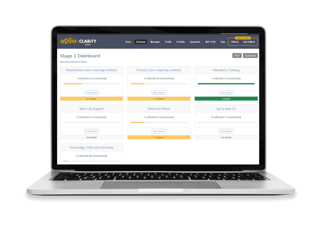 Clarity FCPs was developed in partnership with Primary Integrated Community Services (PICS) to offer a personalised, simple, web-based solution for First Contact Practitioners to manage their Roadmap to Practice and learning portfolio whenever they want, wherever they want.